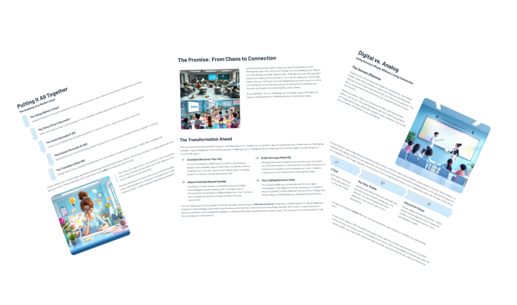 Perfect for the Bible Lesson. Don't just read dry verses. This structure teaches you how to turn any Bible passage into a multi-sensory journey. You will learn where to pause, where to whisper, and where to use visuals so their eyes never leave you.