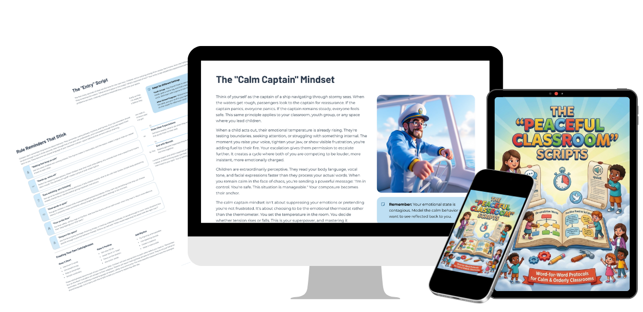 Management & Positive Discipline. Word-for-word scripts for discipline without anger. The exact phrases to say to the child who interrupts, the child who won’t sit still, and the child who is crying. Restore order with grace, instantly.